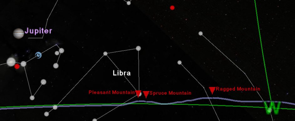 Anyone can generate a sky map assuming a flat horizon. HeyWhatsThat can go a step further. Because we've built the machinery to calculate the panorama from anywhere in the world, we can overlay that panorama on the sky. Here's the difference (in our Google Earth Planisphere):